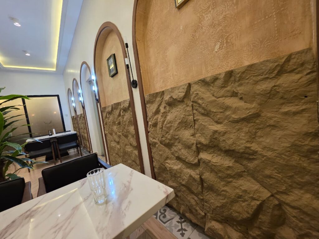 Despite being abroad, the client received regular updates, progress reports, and installation photos. The end result? A stunning combination of textured PU panels that transformed the dining space into a modern, stylish, and inviting area.